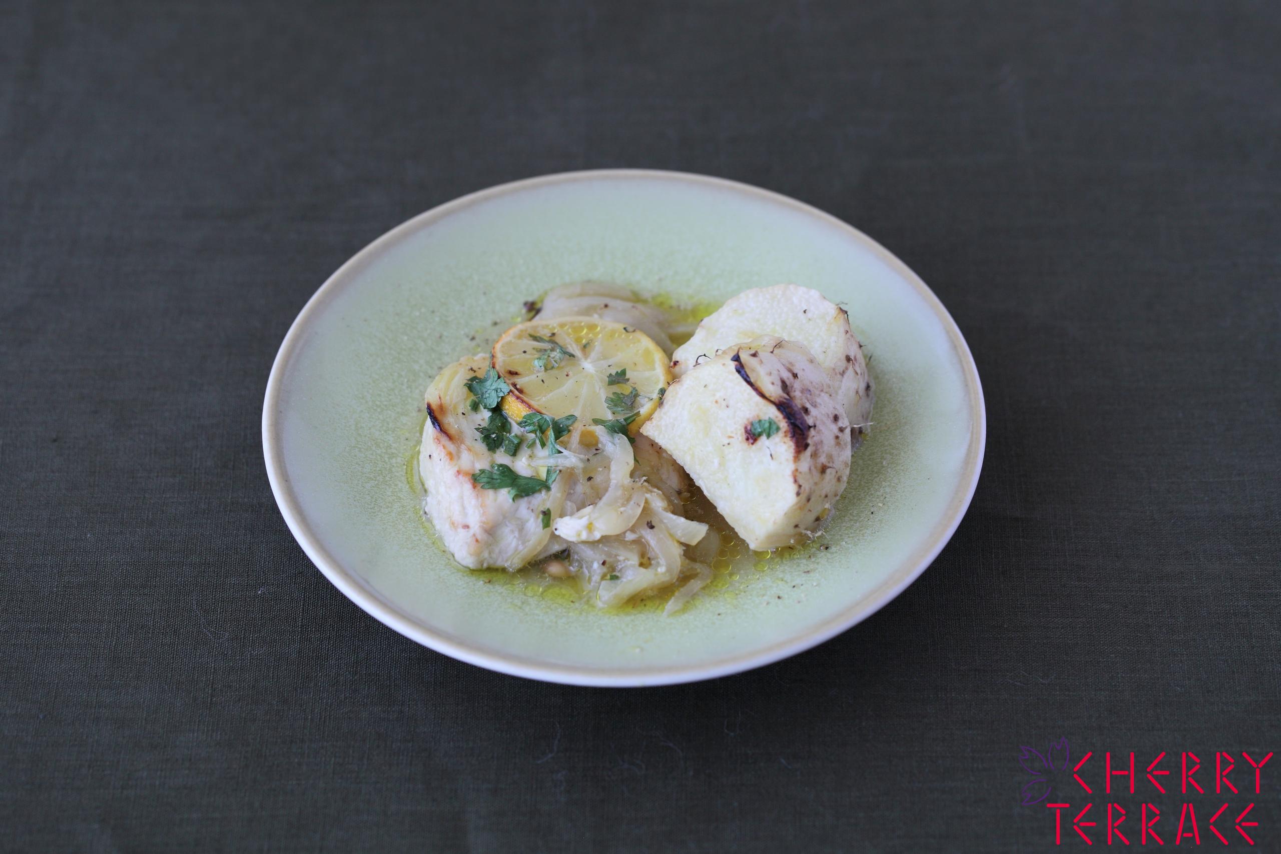 レモンとレモングラスのさわやかな風味が染み込んだメカジキはふんわりとした焼き上がり。厚めに切った長芋のしゃきっとした食感とのコントラストも楽しめます。