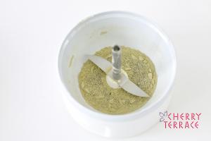 - パウダーディスクを外し、煮干しを加えて再び全体が細かくなるまで粉砕し、最後にへらで塩を混ぜ合わせる。