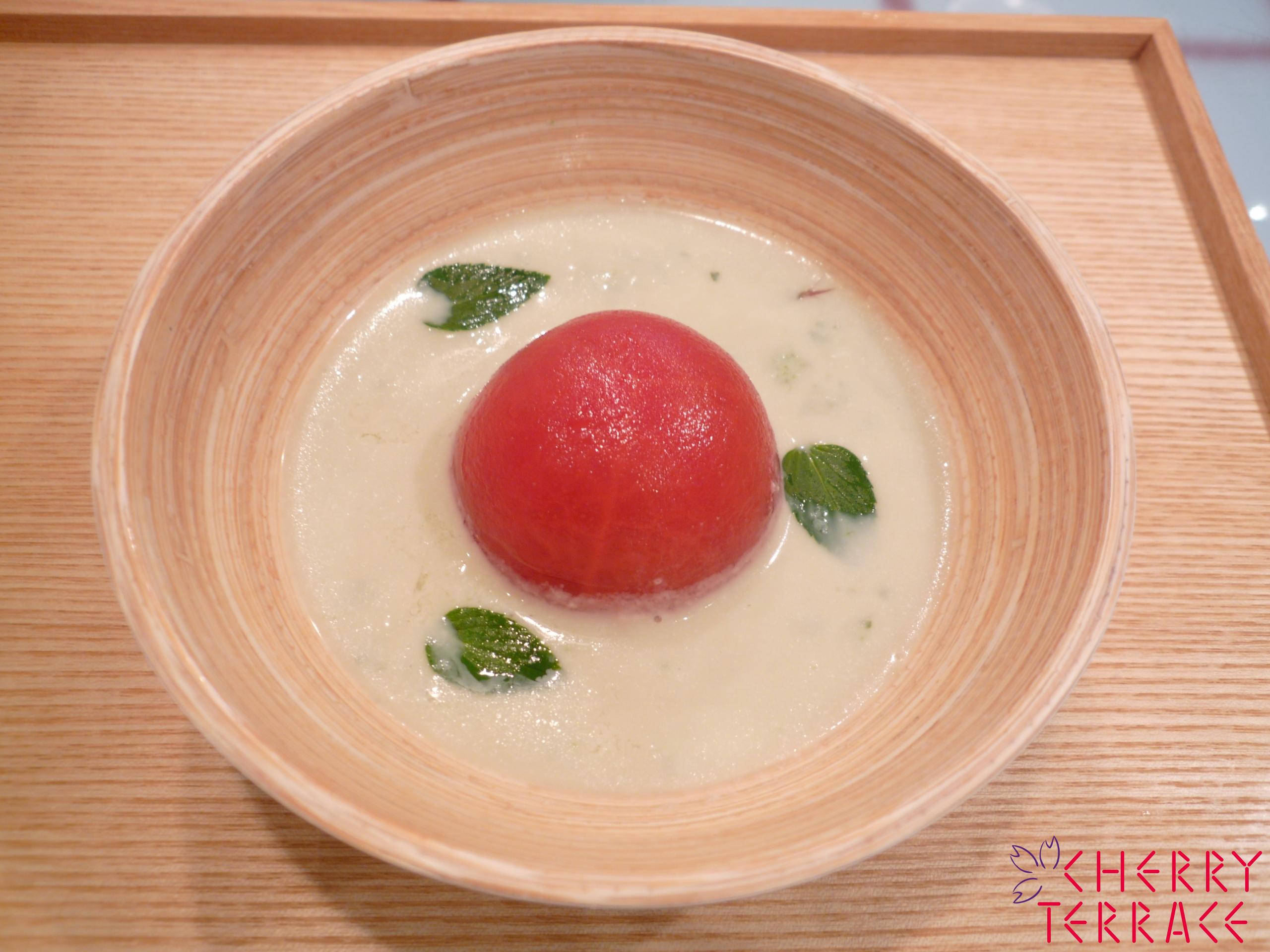 - 湯むきしたトマトを加え、半日以上冷蔵庫で冷やす。