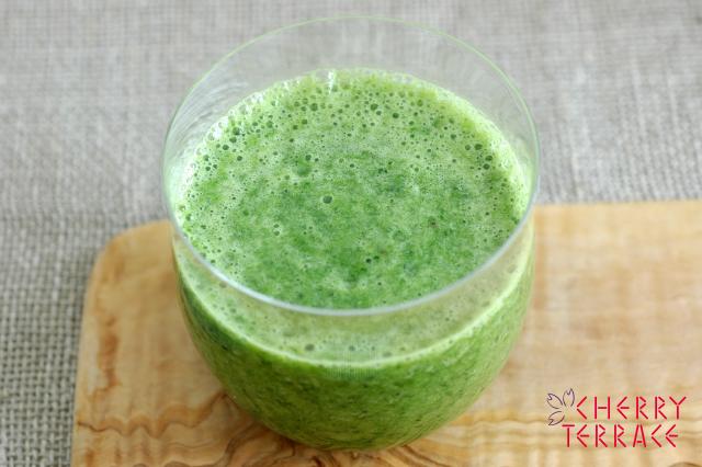 バーミックスの十八番メニュー、フレッシュミックス。野菜や果物をピューレ状につぶし、スプーンで食べる青汁ですが、このレシピは水分を加え混ぜることでごくごく飲めるようになりました!