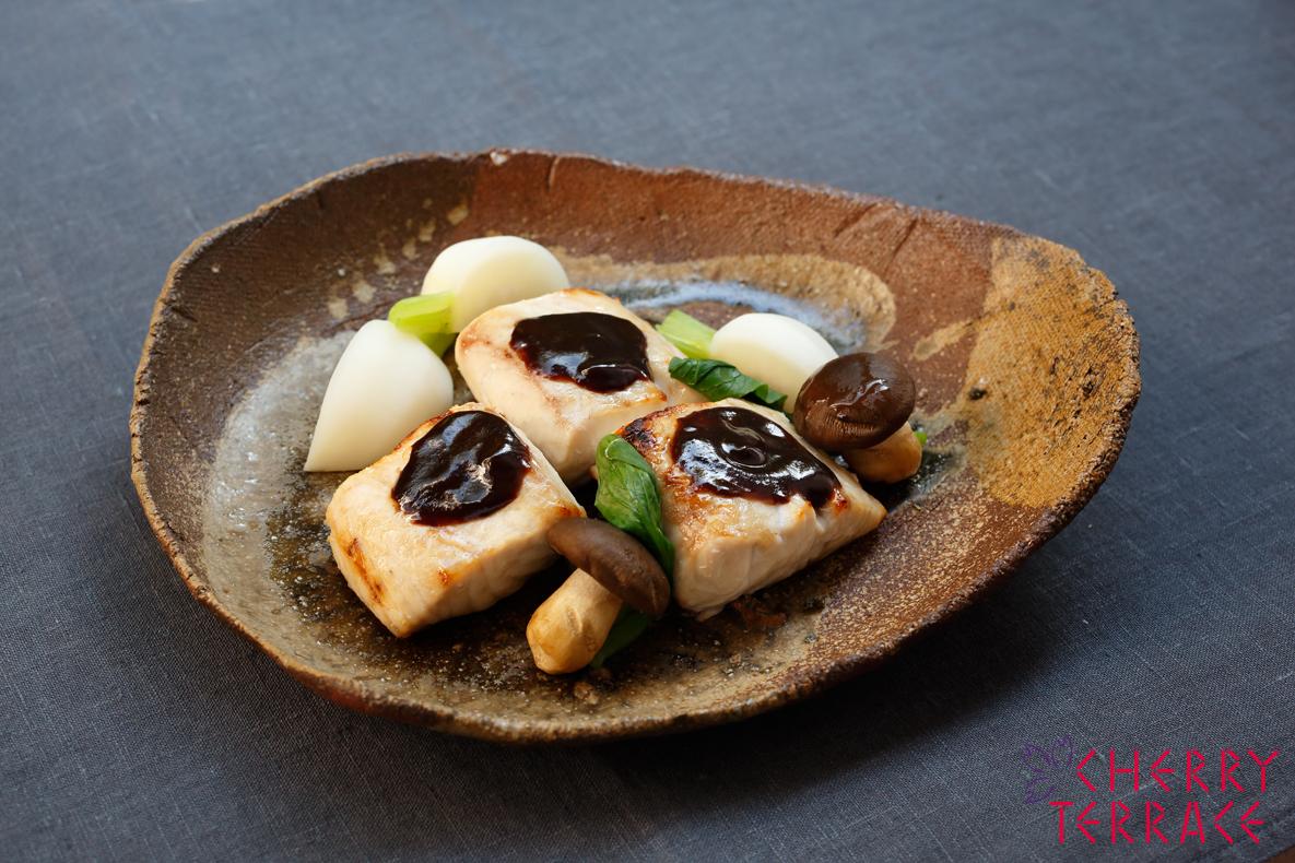 • さわらは薄塩をして、クリステルフライパンで焼く。焼き上がったらAをかける。