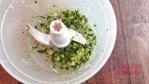 - しょうが、万能ねぎをバーミックス(スライシー/チョッピングナイフ)で細かくする。