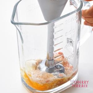 - Aの材料を容器に入れバーミックス(ミンサー)で2分ほど砕きつぶし混ぜる。
