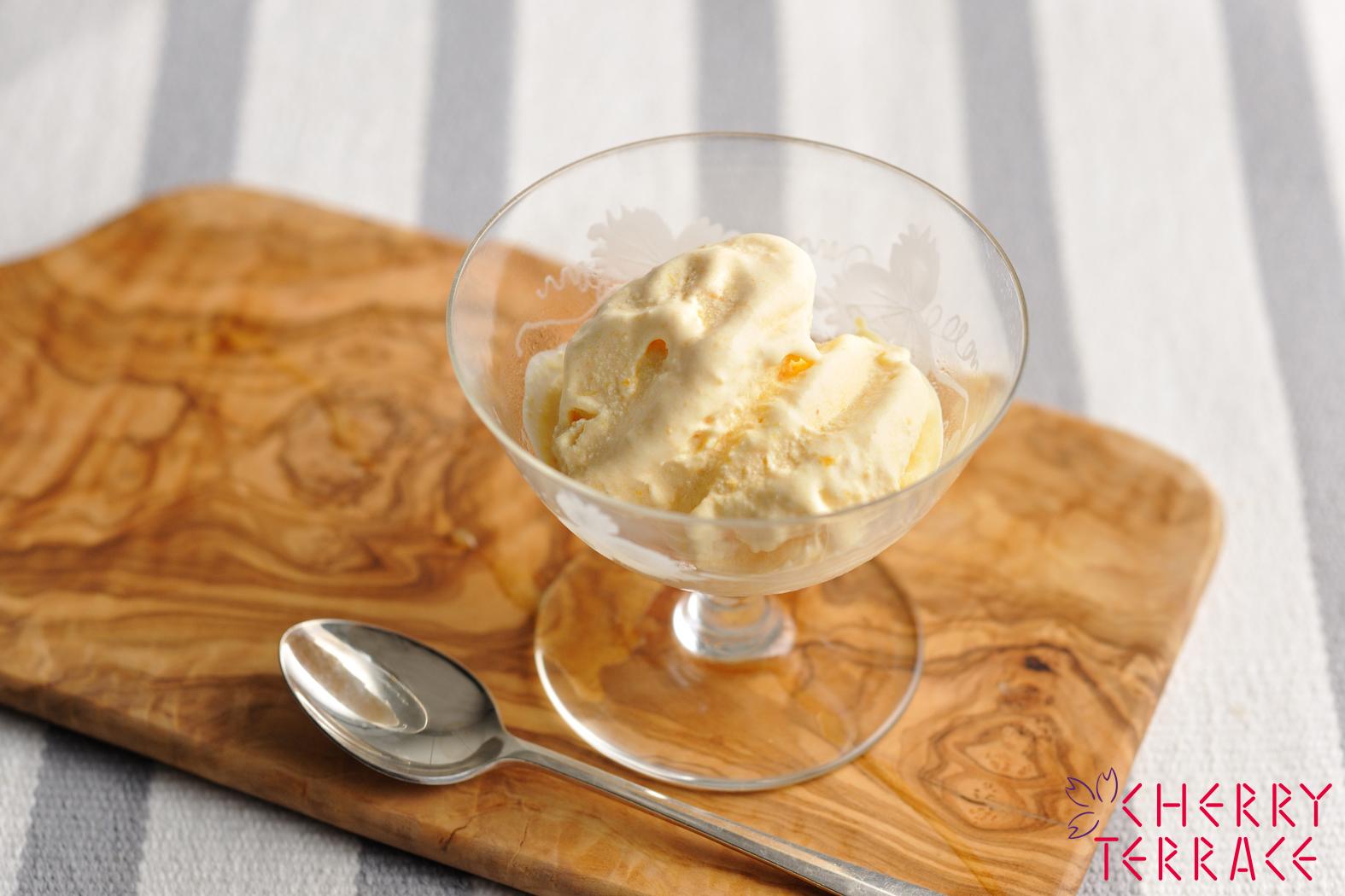 - 1を生クリーム、砂糖と一緒に容器に入れ、バーミックス(ミンサー)でつぶし混ぜる。そのまますぐでもよいし、一度冷凍庫で冷やし固めてからいただいてもよい。