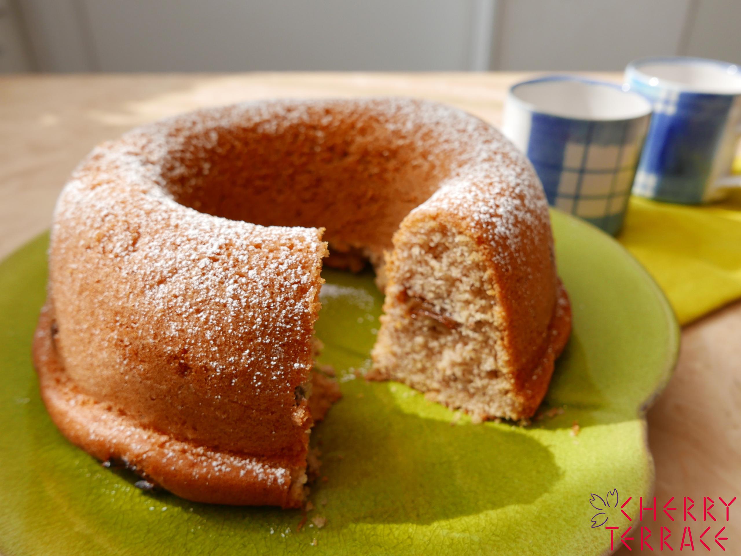 - エンゼル型の内側にオリーブオイルを塗り、強力粉を薄くひいて余分な粉を落とし、6の生地を流し入れる。180℃に熱したオーブンで15分、170℃に下げて15分(計30分)焼く。冷めたら好みの大きさに切る(粉砂糖をかけても良い)。