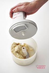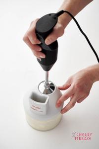 - Aの材料をバーミックス(スライシー/チョッピングナイフ)に入れ、回転させて粉をふるい、切り混ぜる。