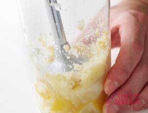 - 冷凍したレモンをバーミックス(ミンサー)でつぶし混ぜてシャーベット状にする。