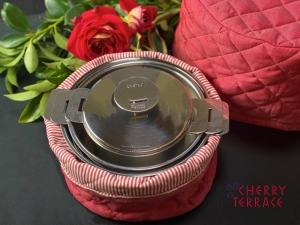 - クリステル深鍋にラウデミオ大さじ2を入れて、やや強めの中火で玉ねぎが透き通るまで炒める。キノコ類を入れて約3分程炒めてしんなりしてきたらアーモンドミルク、昆布茶、味噌を入れる。グツグツと沸騰したら火を止めて、ホットキルトに入れて余熱をつかって最後調理を完成させる。