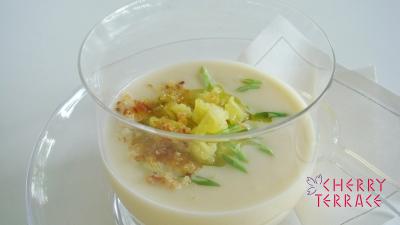 野菜を炒めて細かく砕くスープは、素材感にこだわりたいので、食感を残しながらつぶせるバーミックスはとてもいいと思います。 スープはテクスチャーと、色や香りのバランスが大切。野菜の食感を残すほか、くるみのような歯ごたえのあるものを添えたり、ご飯やバゲットでとろみをつけるなどのちょっとしたテクニックで、テクスチャーに変化をつけることができます。 味の組み立てには好みもありますが、基本的に同系色の素材同士は味の相性がいいものです。それと、私は素材の生の切り口の香りをかいだときのインスピレーションでも、ほかのどんな味を合うかを感じとるように心がけています。