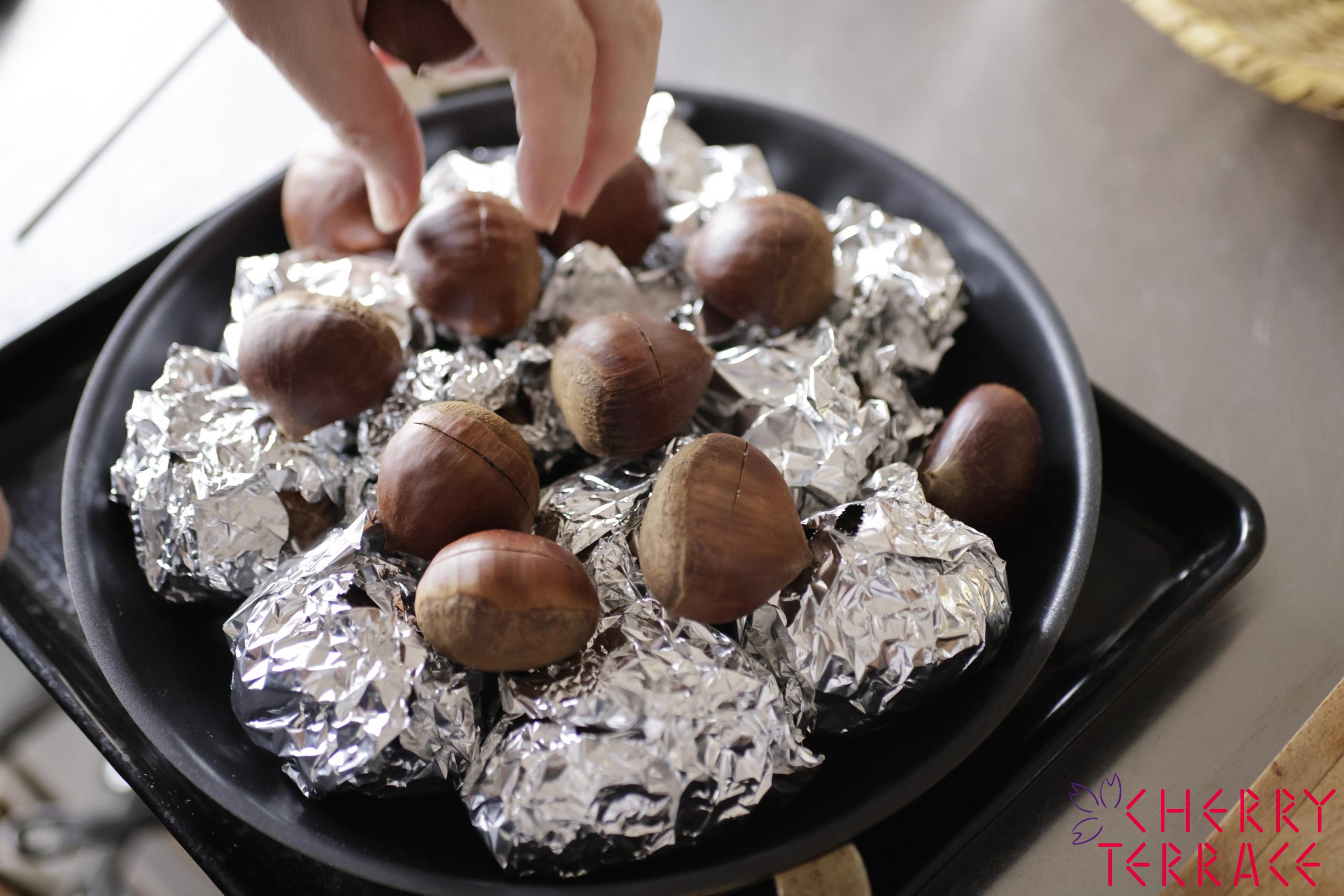 なかなか渋皮まで食べにくいですが、渋皮煮にすると美味しくお召し上がりいただけます。冷凍保存もできますので、大きくしっかりとした栗が手に入ったときにおすすめです。ぶ厚く固い鬼皮は、沸騰したお湯に一気に栗を入れて強火で3分程茹で、ザルにあげ氷水に入れて冷やすとむきやすくなります。