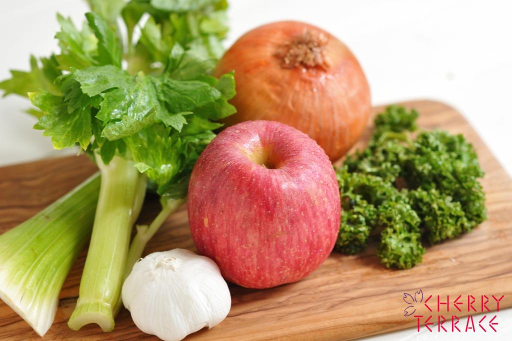 りんごやセロリに豊富に含まれる食物繊維は、食後の血糖値が急激に上がるのを防ぐことができると言われています。ベジファーストで、りんごドレッシングをかけたサラダをお食事の最初にいただくと抗糖化も期待できるため、おすすめの食べ方です。