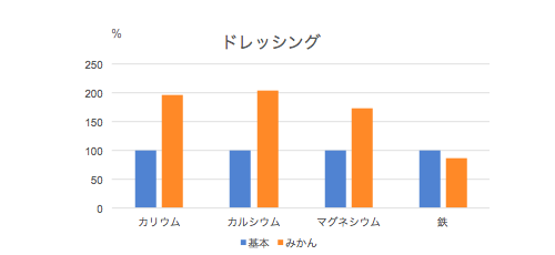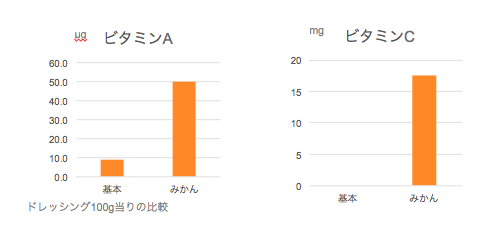 まるごとみかんを使用するドレッシングは、基本のドレッシングと比較して、ミネラルやビタミンを多く摂取することができます。特にビタミンCは、基本のドレッシングには含まれていませんが、みかんを加えることでビタミンCを摂取することができます。