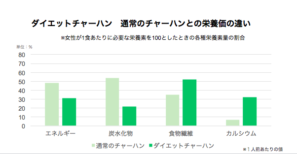 ごはんをしらたきに置き換えたダイエットチャーハンは、通常のチャーハンと比較してエネルギーは約3割カット、そして食物繊維は約1.4倍摂取することができます。また不足しがちなカルシウムしがちなカルシウムと摂る事ができる、嬉しいレシピです。