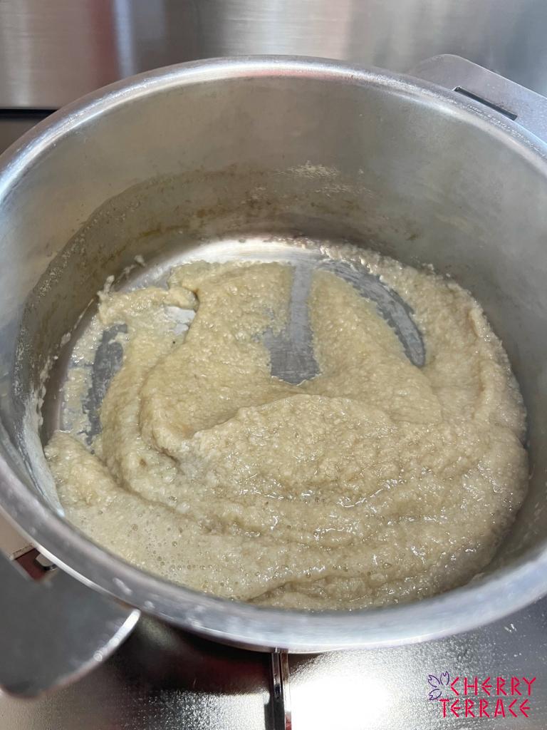 キノコキトサンを効率よく摂取するには、「えのき氷」がおすすめ。バーミックス(ミンサー)で細かくしたえのきだけをゆっくりと鍋に入れて加熱します。この時のポイントは「ゆっくりと加熱」すること。60~70℃くらいの温度で1時間ほどゆっくりと煮詰めてくださいね。えのき茸に限らず、きのこは水から茹でて、沸騰させずに60~70℃くらいで煮だすと旨み成分がでやすくなります。
