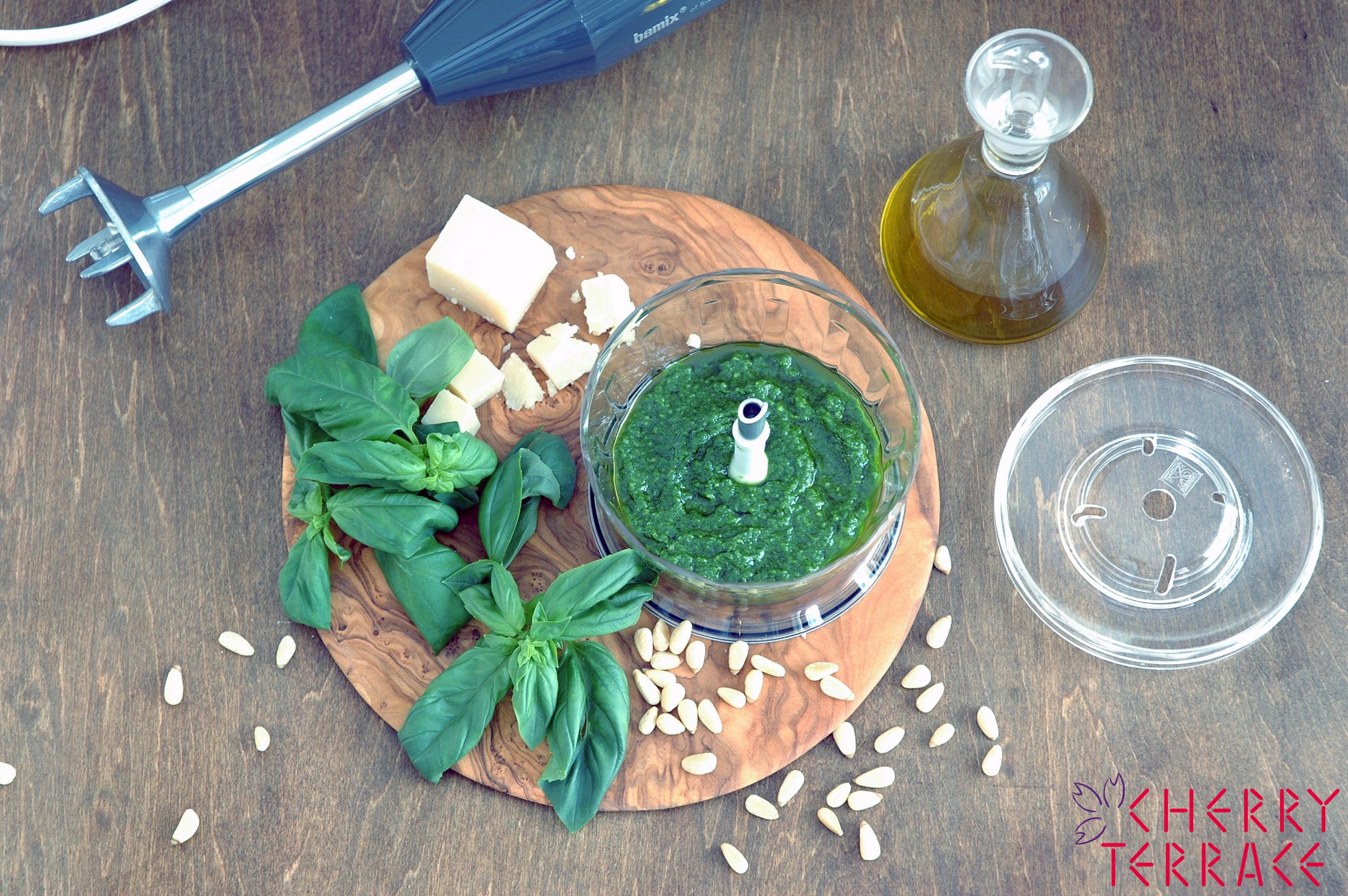 バジルのほか、ルッコラ、パセリなど緑の葉野菜でも同様になめらかなソースを作ることができます。