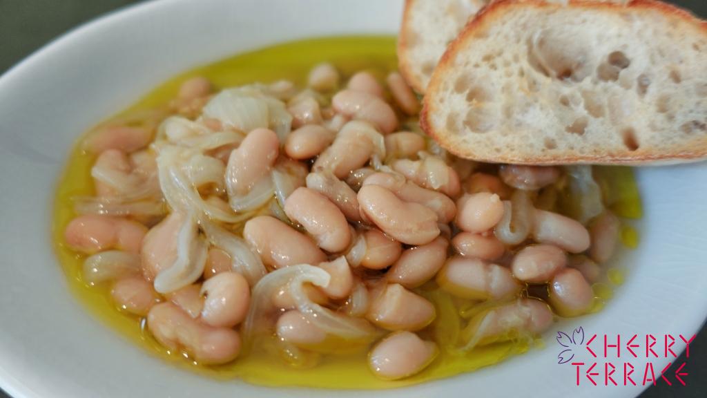 トスカーナの伝統的な料理、白いんげんの煮込みは、ラッコルトを味わうのにぴったり。淡白な料理にエメラルドグリーンのオイルの色が際立ちます。そして、ラッコルト独特の辛みが豆の旨味を引き立てます。