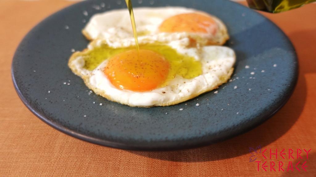 以前にフレスコバルディ家のボナ夫人に、フレスコバルディ・ラウデミオのイチオシレシピは?とお尋ねしたところ、シンプルな目玉焼きと。「目玉焼きにたっぷりラウデミオをかけて、最後にトリュフをかけてね」と。