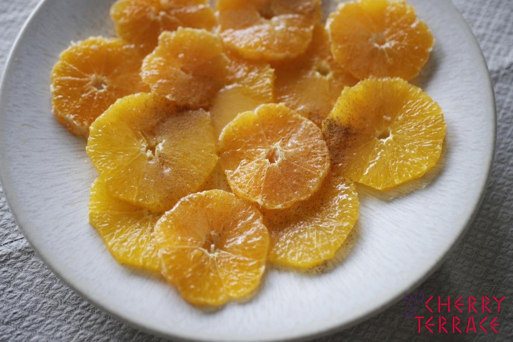 偶然招待されたモロッコ人の女性がさっと作ってくれた、オレンジのサラダをアレンジして。