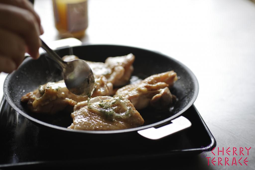 鶏肉に蜂蜜という組み合わせは意外かもしれませんが、タイムを加えた蜂蜜の甘さが香ばしく、よく合うものです。