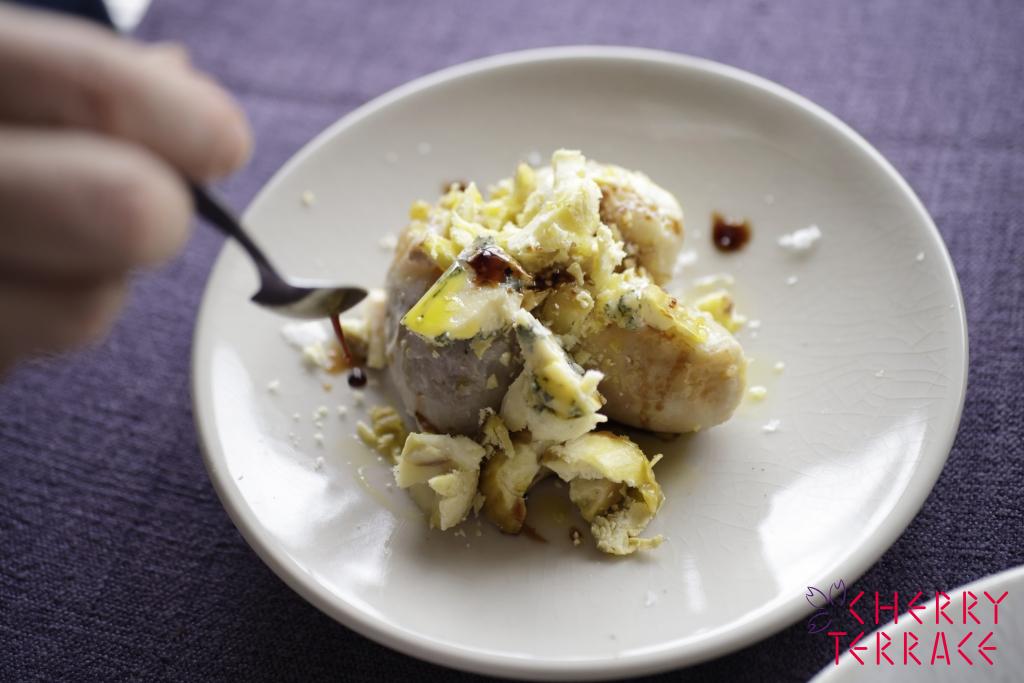 自分好みの食べ方です。まずはそうして食べ、続きはブルー系のチーズで。ワインが進みます。