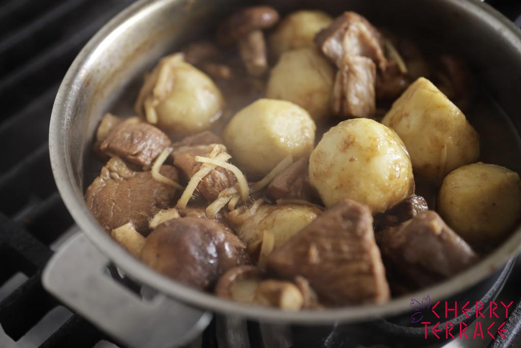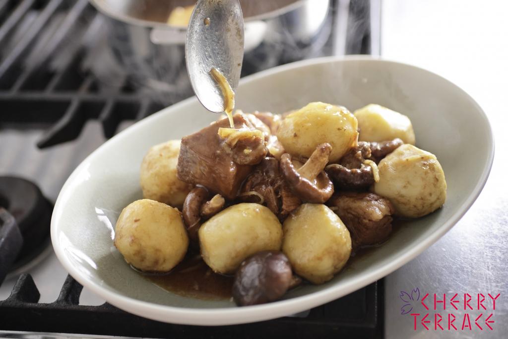 今回は里芋が加わるので、その煮汁と相まってより優しげな風味になります。八角やクコの実を加えれば