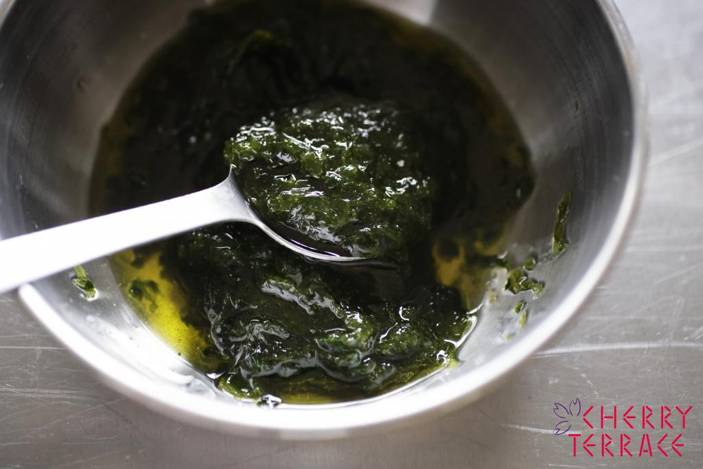 火の通りは早いので、ソースを前もって用意しておくようにします。このソースはパスタにも。