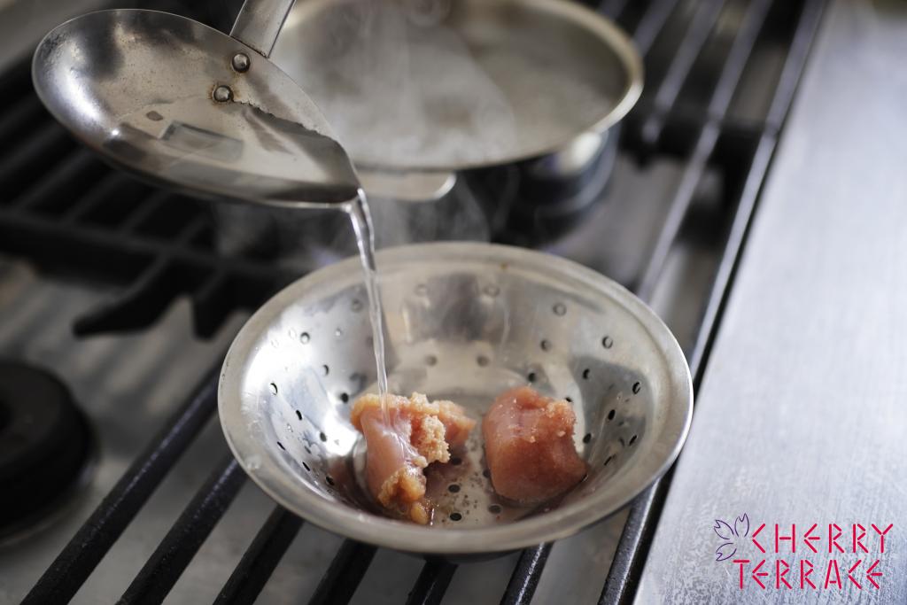仕上げだけでなく、途中で少し加えて出汁の一部にします。牛すね肉を煮て出た脂はなるべく取り除いて、ラッコルトの青みのある風味を馴染ませるというやり方です。鶏肉や豚肉を煮る時も、同じように少し加えて煮込むと雰囲気が変わります。