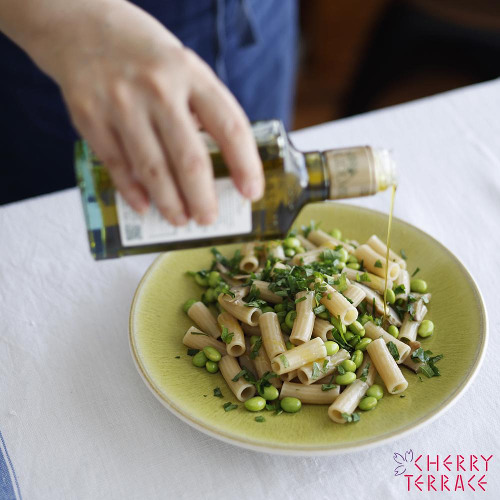 イタリアやヨーロッパの硬水と日本の軟水との茹で上がりの違いを生かす、というところでしょうか。とろりと溶け出た小麦粉のとろみを生かして、家で作るパスタならではの食べやすく優しいひと皿にしなります。