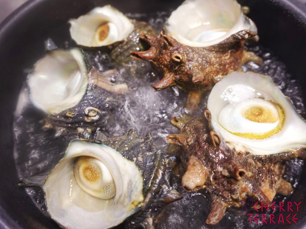 ★工程①の中に桃の皮と種を入れるとはまぐりの旨味と桃の香りが合わさったスープにもなりますよ!