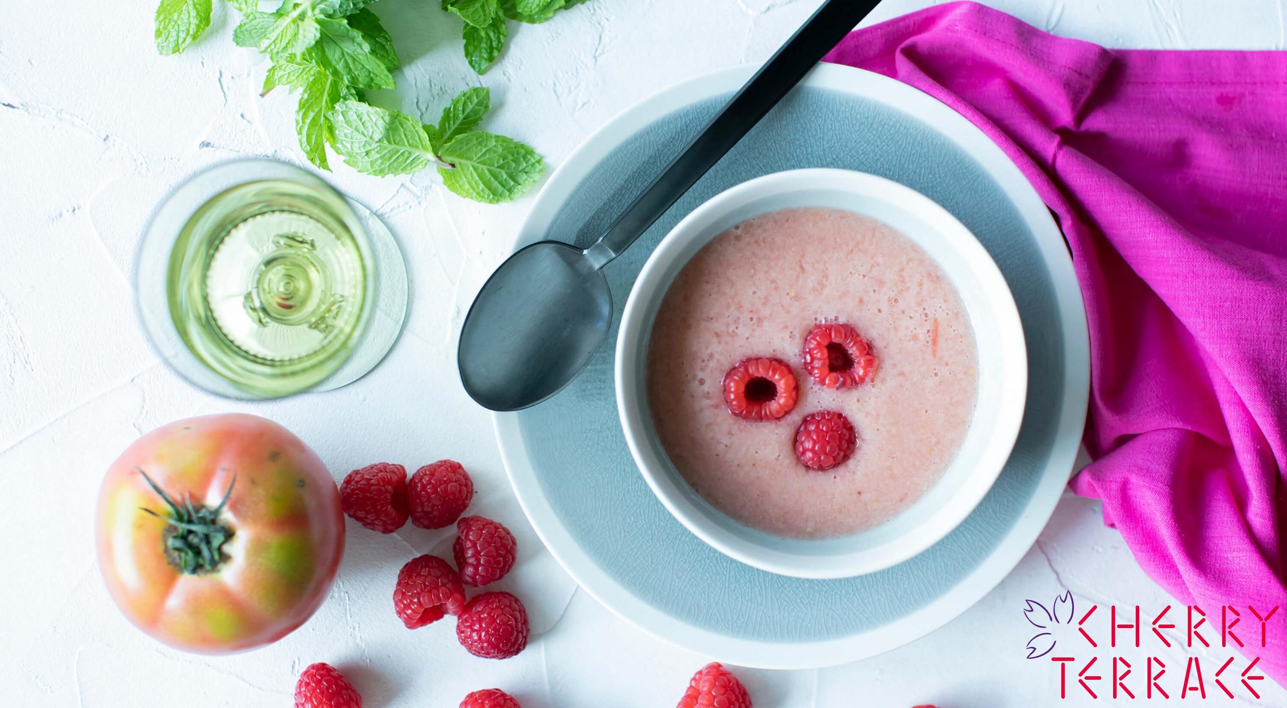 たとえば、今回教えていただいた「スパイシートマトとフルーツスープ」。オレンジやラズベリーなどと組み合わせた鮮やかな彩りで食欲をそそります。