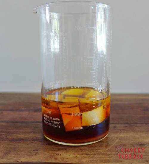 春菊と、玉ねぎを容器に入れてバーミックス(ミンサー)でつぶし混ぜると、緑色の鮮やかなドレッシングに。味の決めては、バルサモ・ディヴィーノと醤油です。