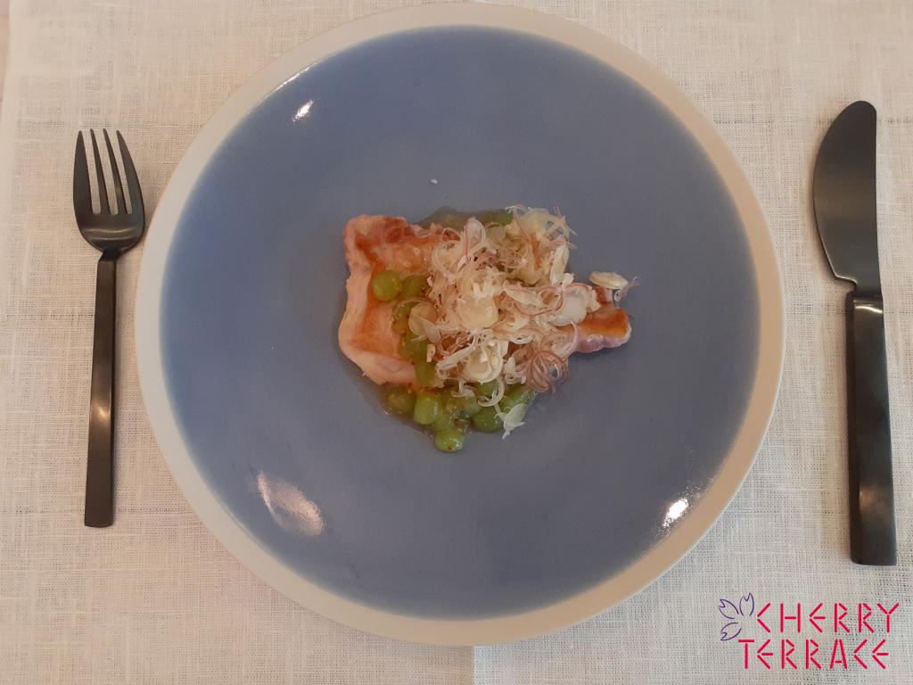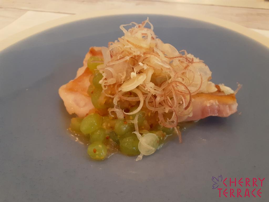 ポークソテー ぶどうと茗荷のソース(補気養血・消腫)