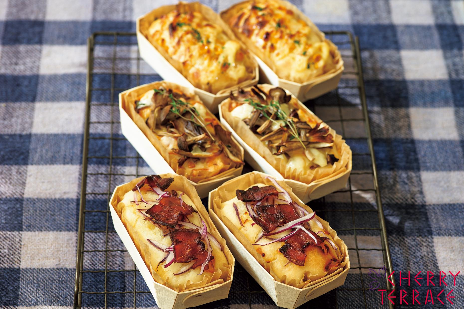 お好みの具材を乗せて楽しんでみてください。上に切れ目を入れてホットドックや、横に切れ目を入れて卵サンドなども