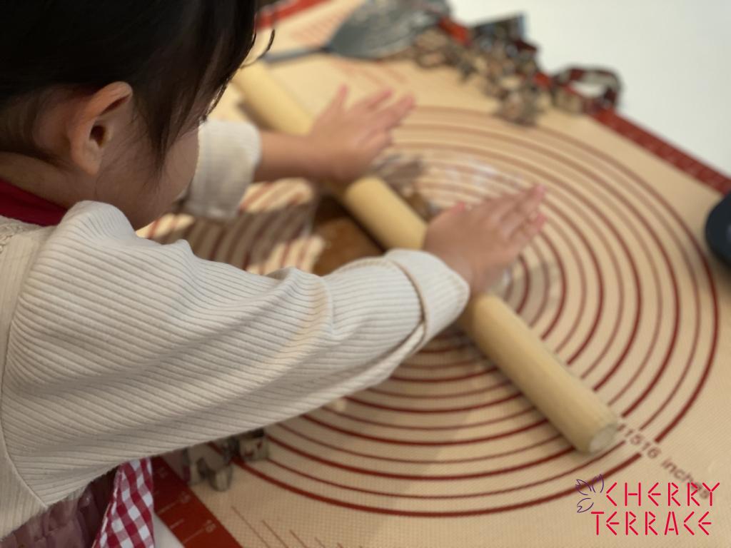 チェリーテラス・代官山に、小さなかわいい女の子がやってきました。スタッフのお子さんが、ジンジャーブレッドクッキー作りに挑戦してくれるというのです!
