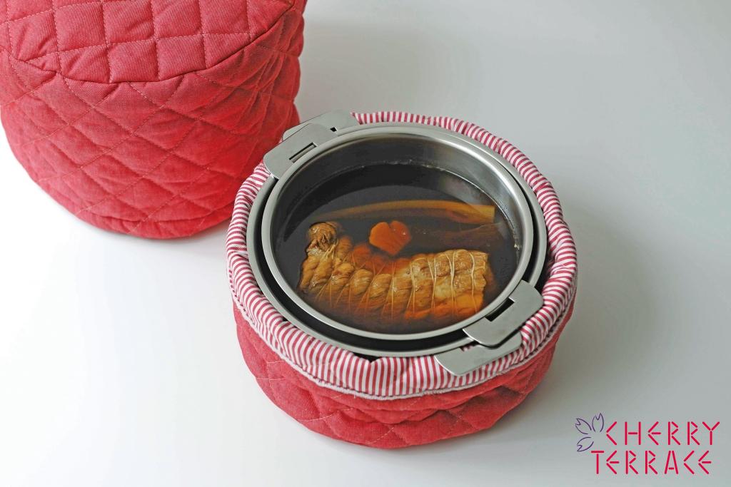 ホット・キルトにクリステルの鍋を入れてしまえば、外出しても、昼寝をしても料理が焦げつく心配はありませんし、加熱時間が短くて済むので省エネにも貢献。