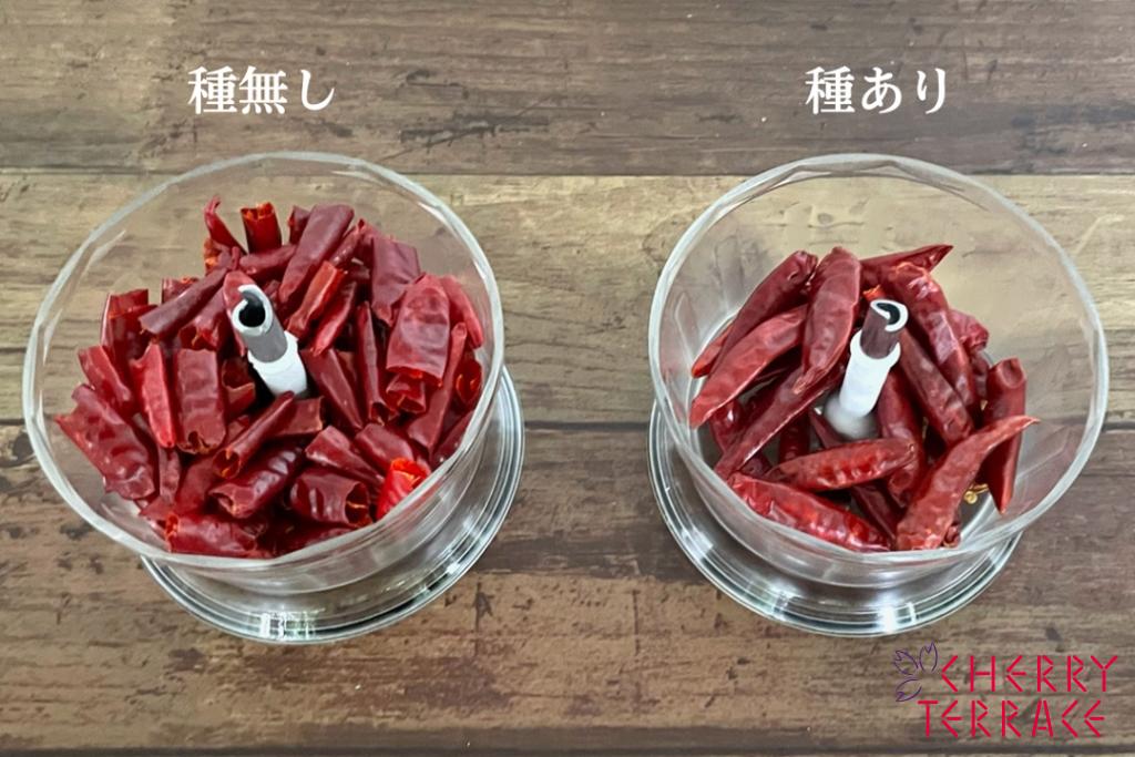 鷹の爪は種が辛いので、種の有り、無しどちらが良いのかわからなかったのですが、