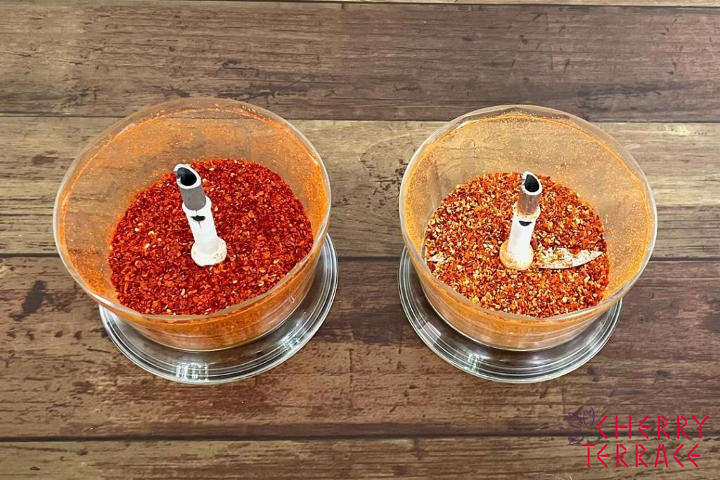 唐辛子は、韓国産唐辛子を粗挽き:細挽き=2:1の割合で試してみました。
