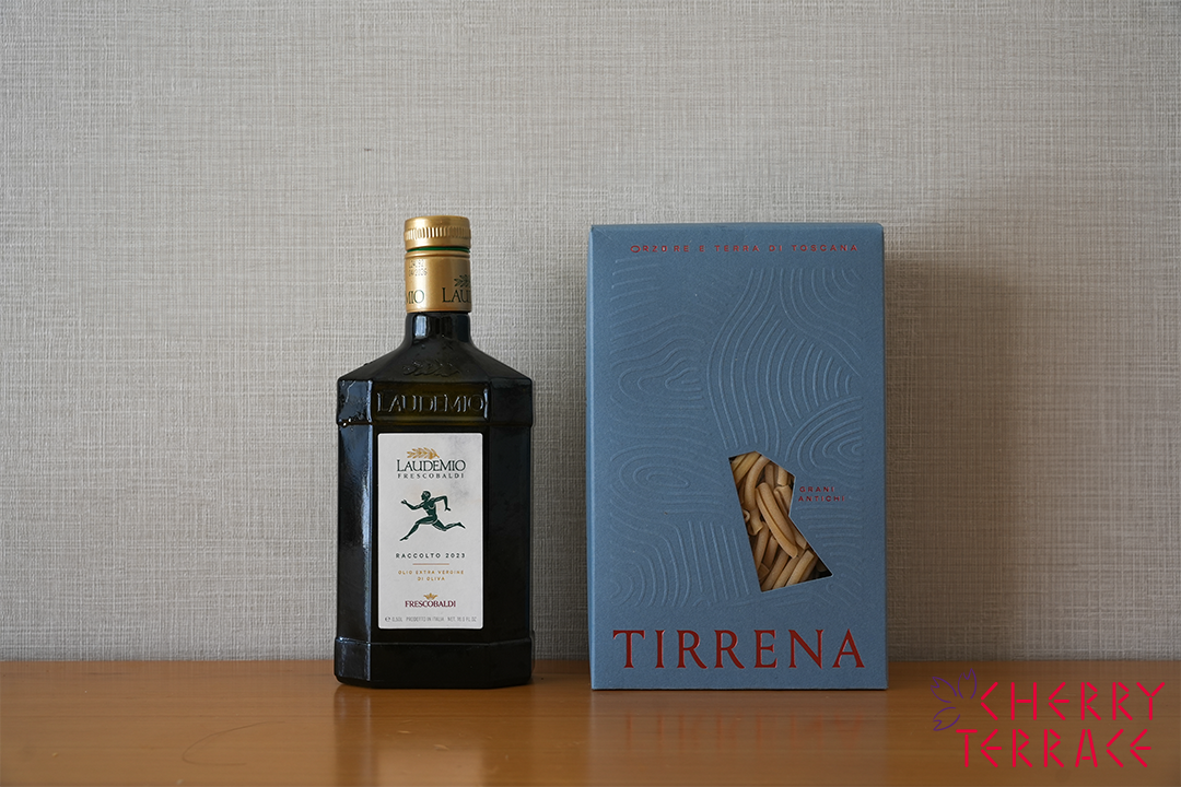 生クリームを使わない、本場ローマ風のシンプルなレシピは、少ない材料で古代小麦の味わいを最大限に生かします。ソースがしっかり絡んで、ひとくちごとに満足感たっぷり。もちもちとした食感がカルボナーラにぴったりです。仕上げにはフレスコバルディ・ラウデミオを回しかけます。同じトスカーナの土壌から産まれたラウデミオと、ティレーナの相性は抜群です。