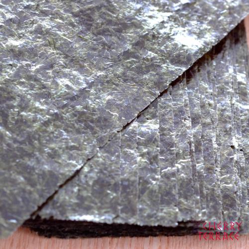 ◇扱い方 湿気を吸うと紅紫色になるので、密閉したビニール袋や缶などの密閉容器に入れ、できれば冷蔵庫で湿気ないように保存する。焼くのは食す直前にし、2枚を中表に合わせ、十分に熱した網の上で、のりの四隅で火をなでるように何回か返しながら万遍なくあぶると、パリッと焼き上がる。使う火は、水蒸気を含んでいるガスより電熱器やオーブントースターのほうがよい。