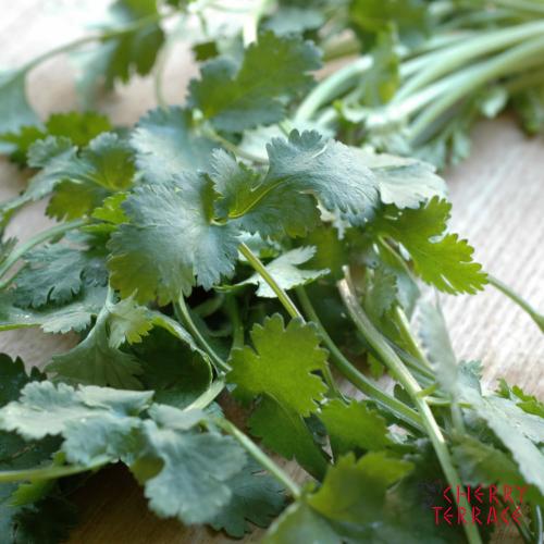 セリ科。地中海東部原産。最も古いスパイスのひとつで、東アジア型(シャンツァイ=中国名)とヨーロッパ型(コリアンダー=英語名)とがある。日本には中国から入ってきたが、ベトナム料理やタイ料理が普及するのにつれて広まった。タイではパクチーという。葉はイタリアンパセリに似ているが、香りも味もはるかに強烈。この特有の強い香りが肉や魚のくさみを消して料理の味を引き立てる。またスープの実としても使われるが、あまりにも刺激的なにおいと味を嫌う人が少なくない。なかには最初苦手にしていたのに馴れるにしたがってやみつきになったという人も見られるが……。スパイスとして用いるのは種子(果実)を乾燥させたもの。粒(ホール)と粉末があり、甘い口当たり、爽快感のある香り、レモンとセージを合わせたような苦みが特徴。カレー粉に独特の甘みを加えるために不可欠なスパイスで、肉や野菜料理からパン、クッキーなどまで広く使われる。漢方では3000年以上前から薬用、食用として栽培され、主に健胃、整腸、解毒作用があり、神経の緊張をほぐし、不眠やイライラを解消するという。摘み取り時期は春~初秋。