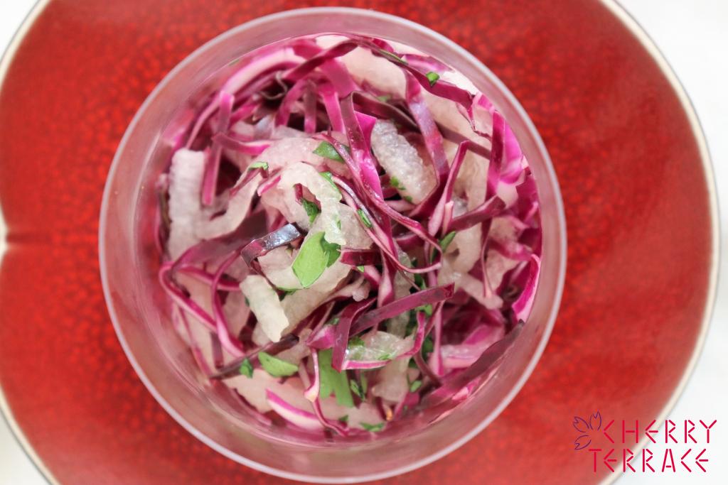 【冬瓜と紫キャベツのソムタム風サラダ】 スライシーを使えば面倒な千切りも簡... -