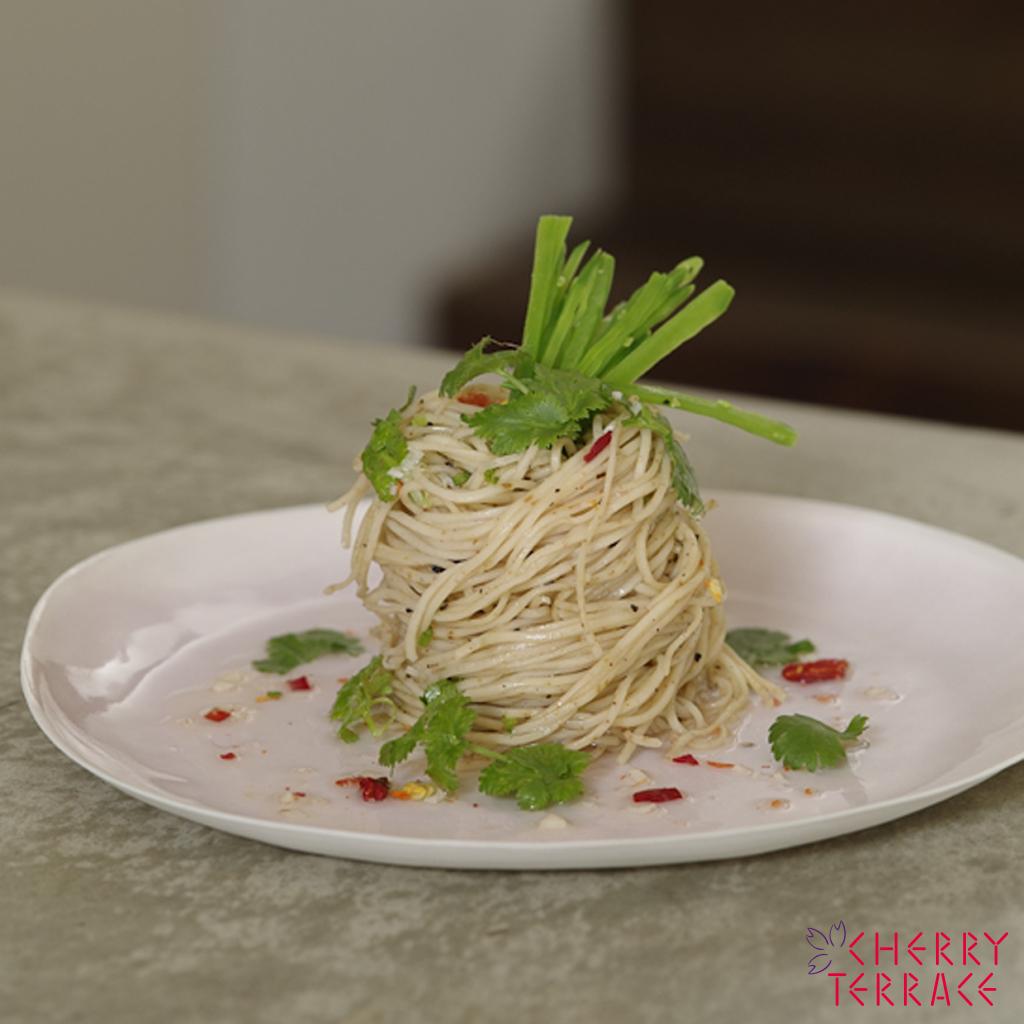 【きぬさやと香菜のえび麺】 香菜好きにはたまらない味です!自由な発想で盛り... -