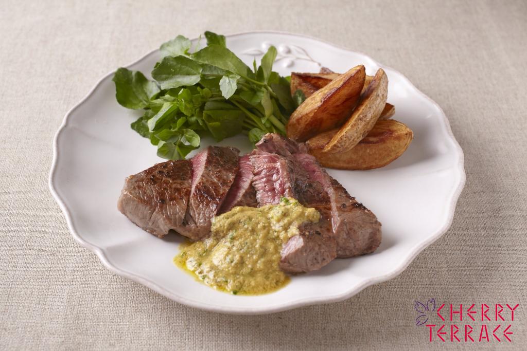 【ベアルネーズソースのビーフステーキ】 タラゴンフレーバーのソースが鍋の中... -