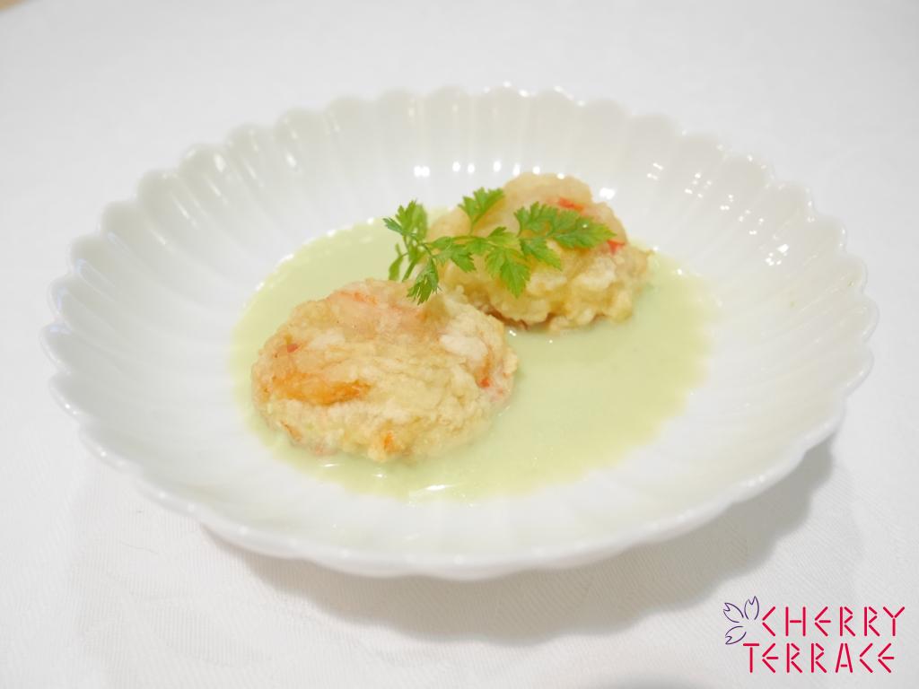 【カラフルれんこん団子 枝豆ソース添え】 手の込んだように見えるれんこん団... -