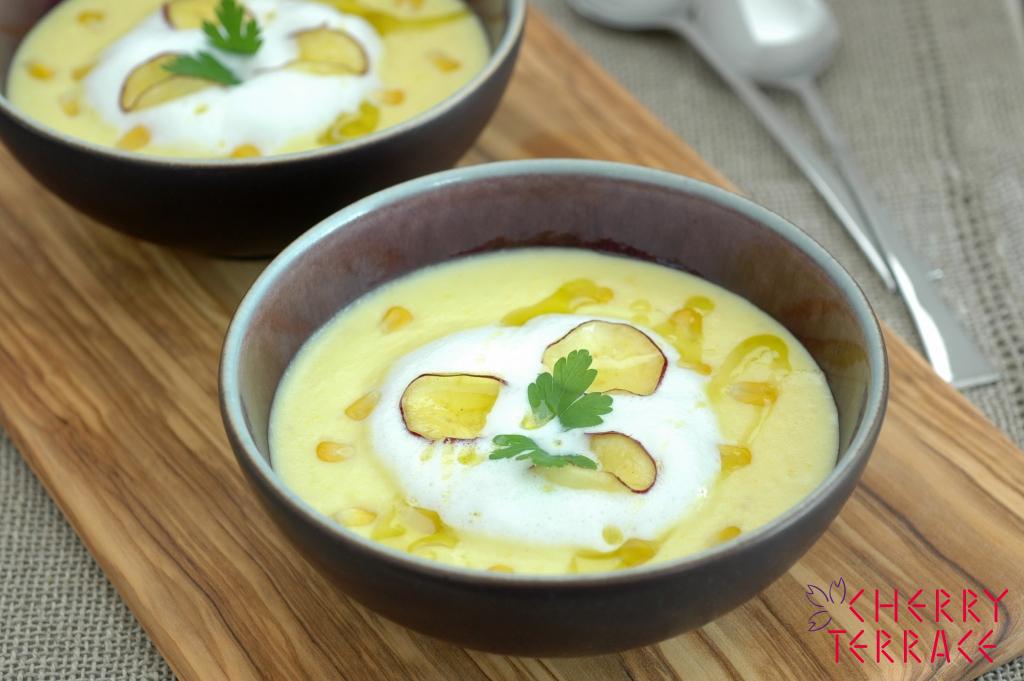 ブイヨンを使わない コーンとさつまいものポタージュ
