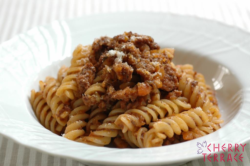 【夏野菜のミートソース】 玉ねぎ、にんじん、セロリ、なす、ズッキーニと、大... -
