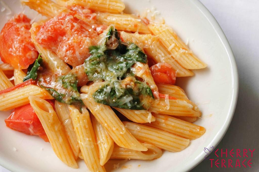 フレッシュトマトとカチョリコッタのペンネ・リガーテ