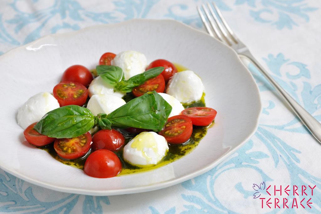 【軽いバジルソースのカプレーゼ】 チーズやナッツを入れない軽いタイプのバジ... -