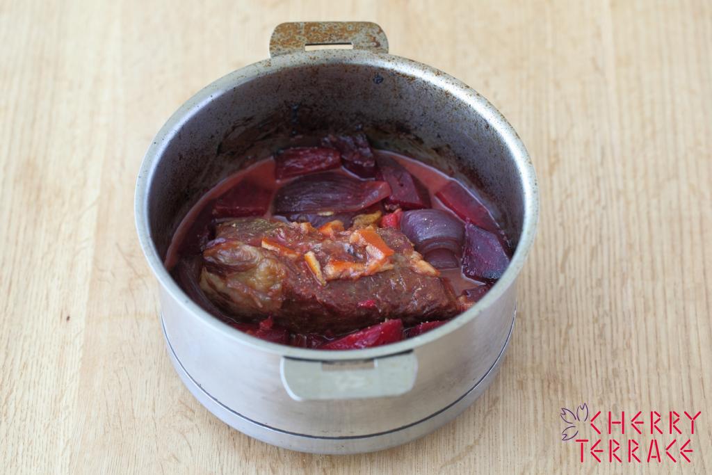 【豚肩ロースとマーマレードの煮込み】 豚肩ロースの塊肉を、あらかじめ塩とマ... -
