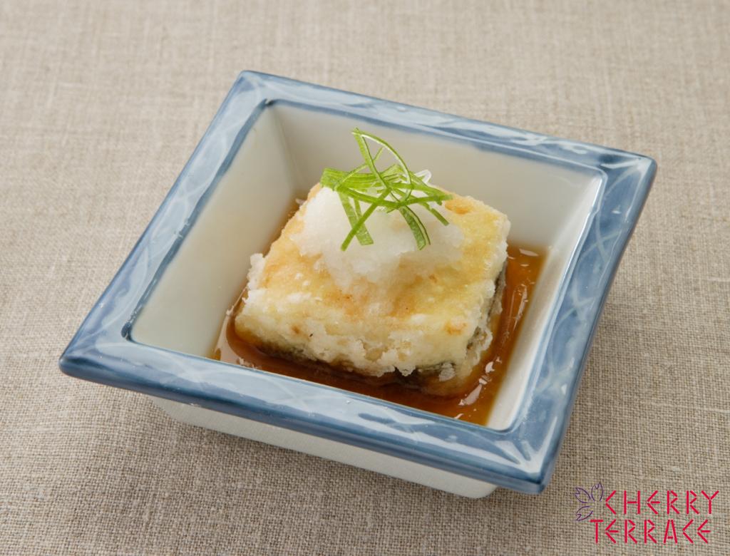 【辛子豆腐】 豆腐にからしとのりをはさんで、揚げ出し豆腐に。ひと手間かけた... -